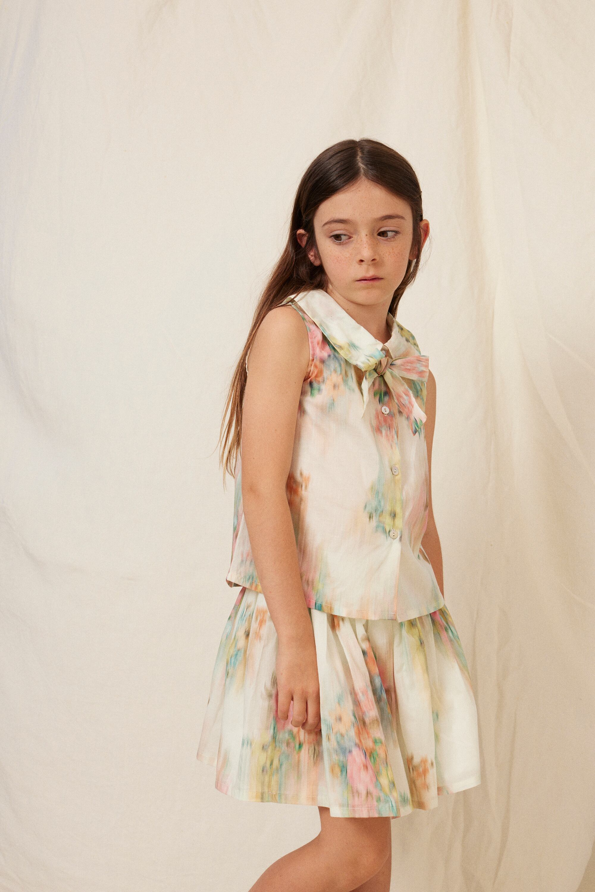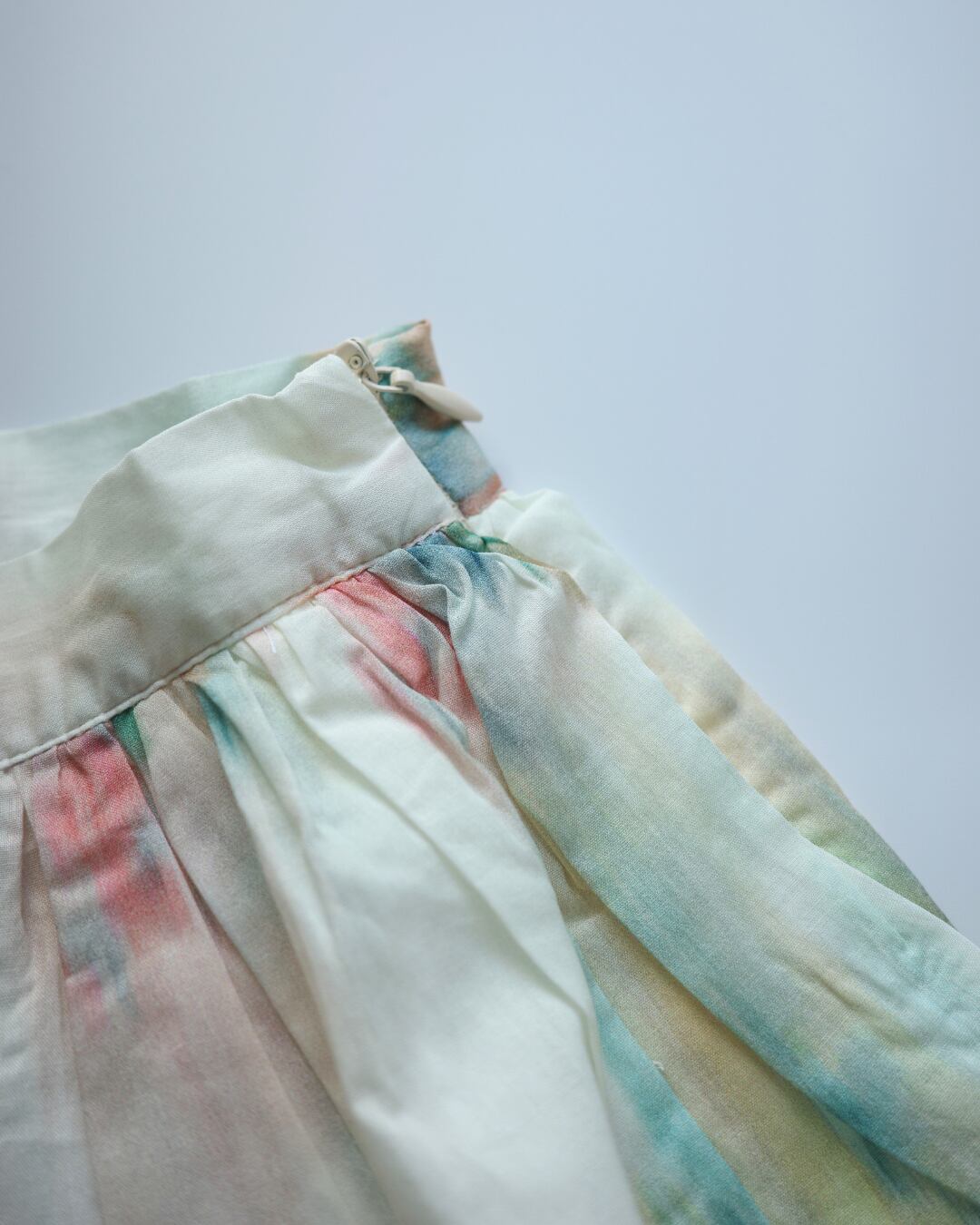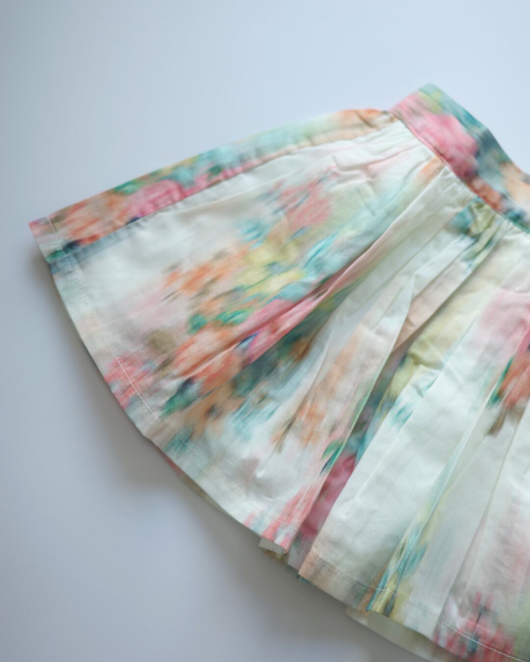 ▶︎ 淡い水彩画のような花柄がやさしく広がるギャザースカート。