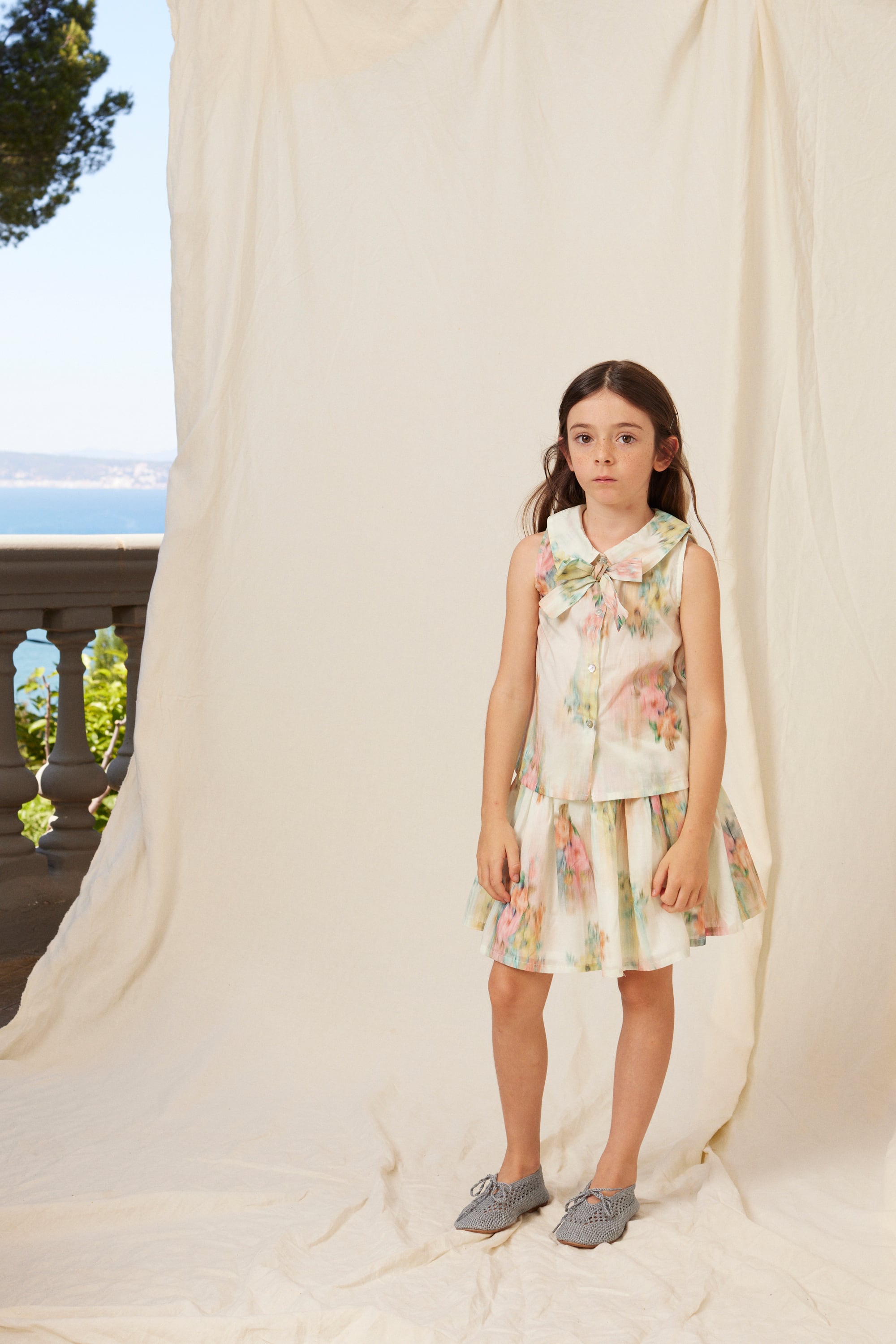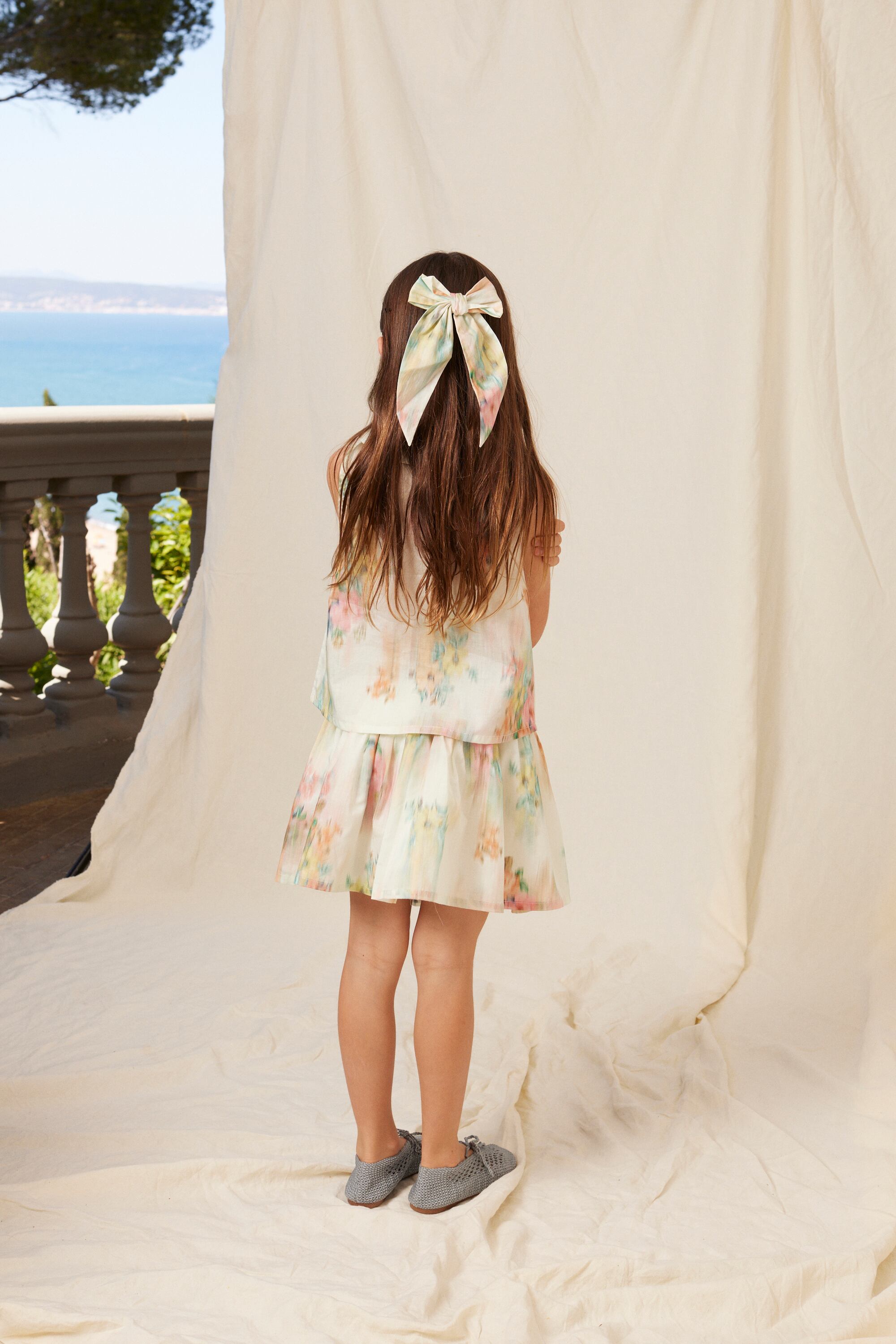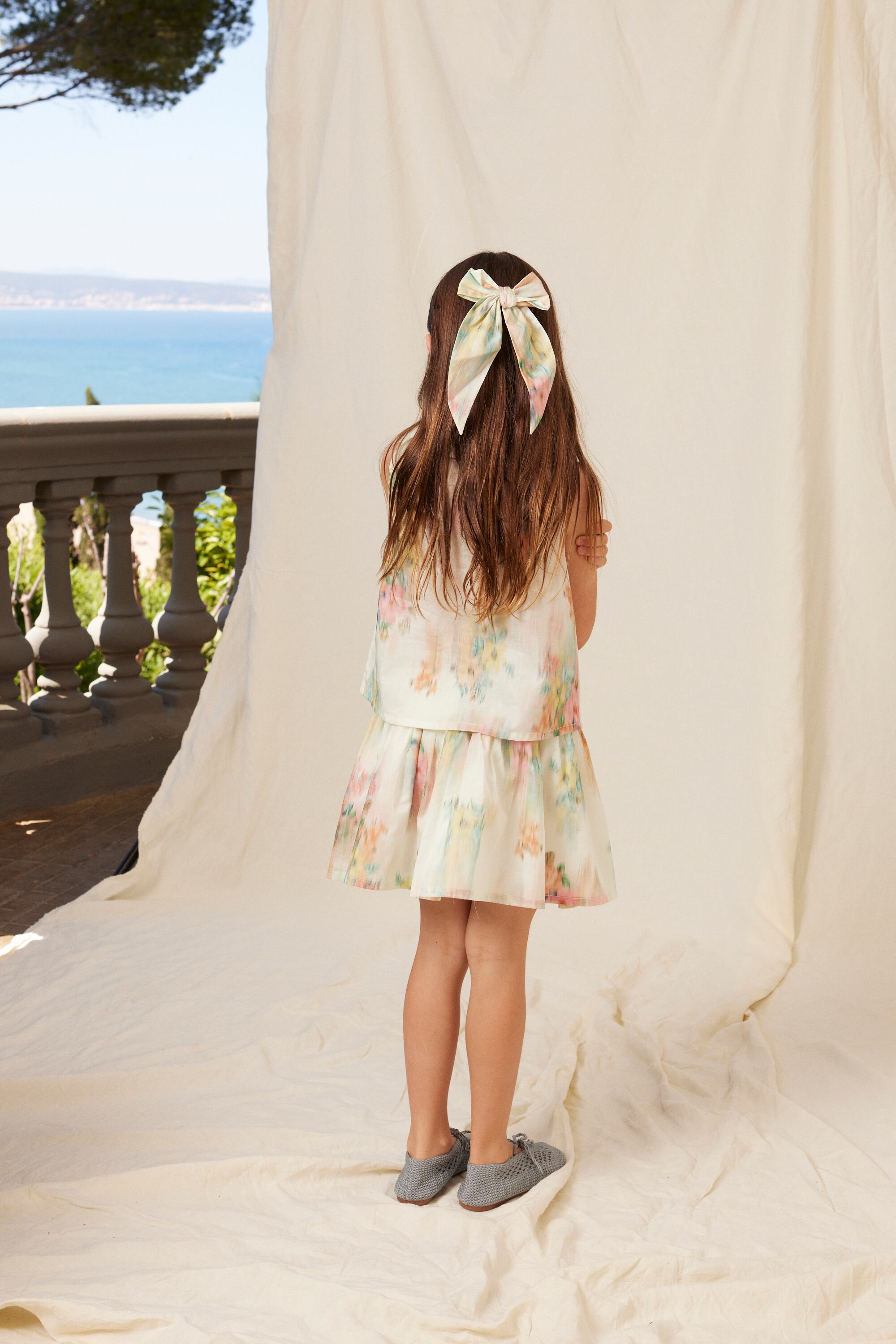 軽やかな素材がふんわりと揺れ、動くたびに可憐な印象を演出します。