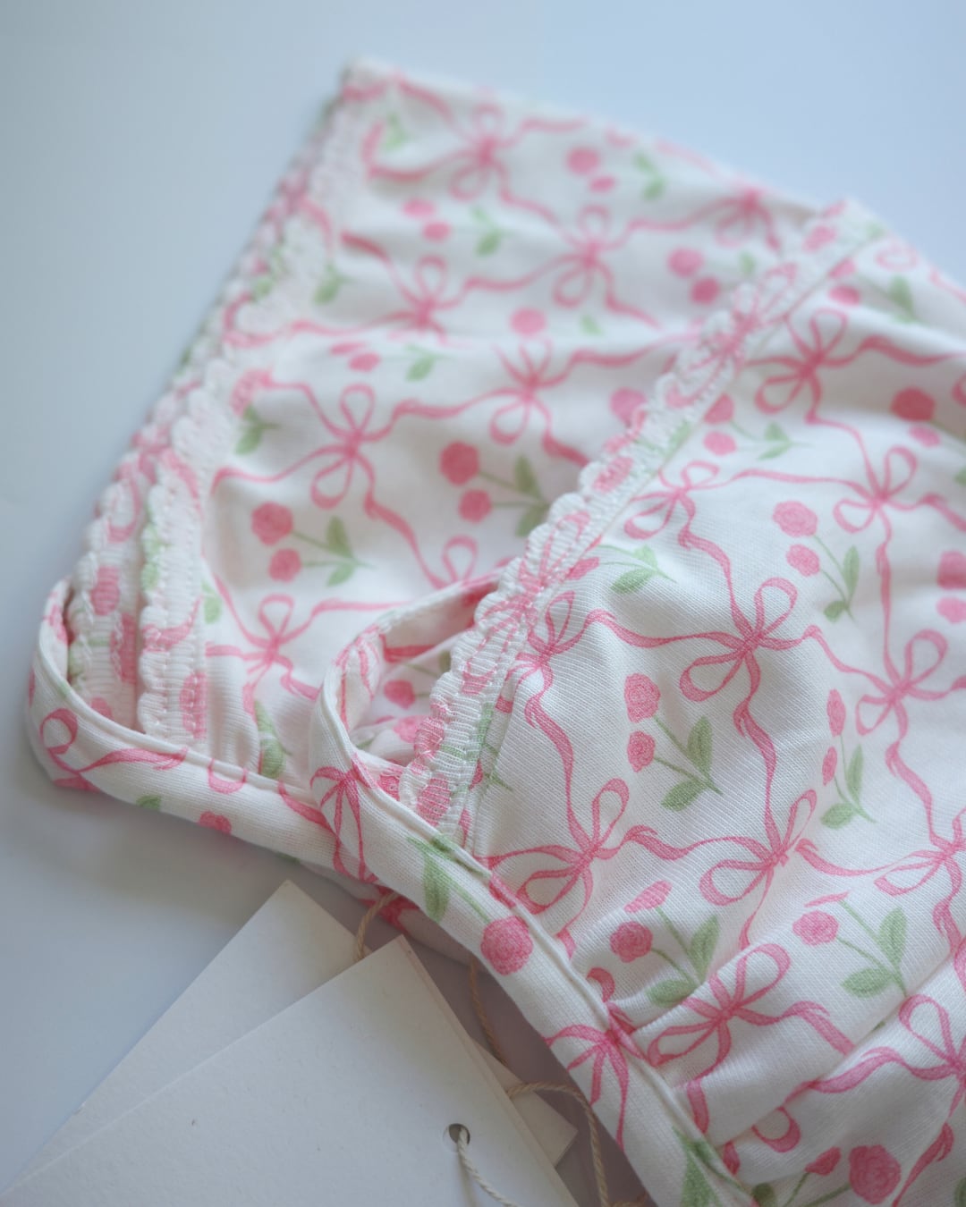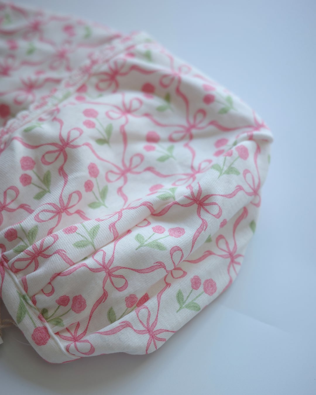 ▶︎ リボンと小花柄が愛らしいベビー用ボンネット。