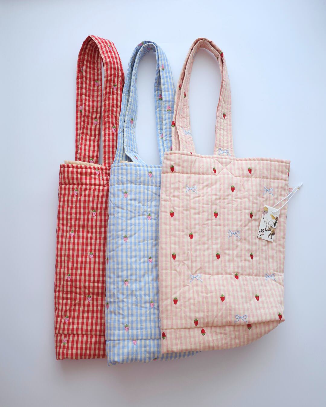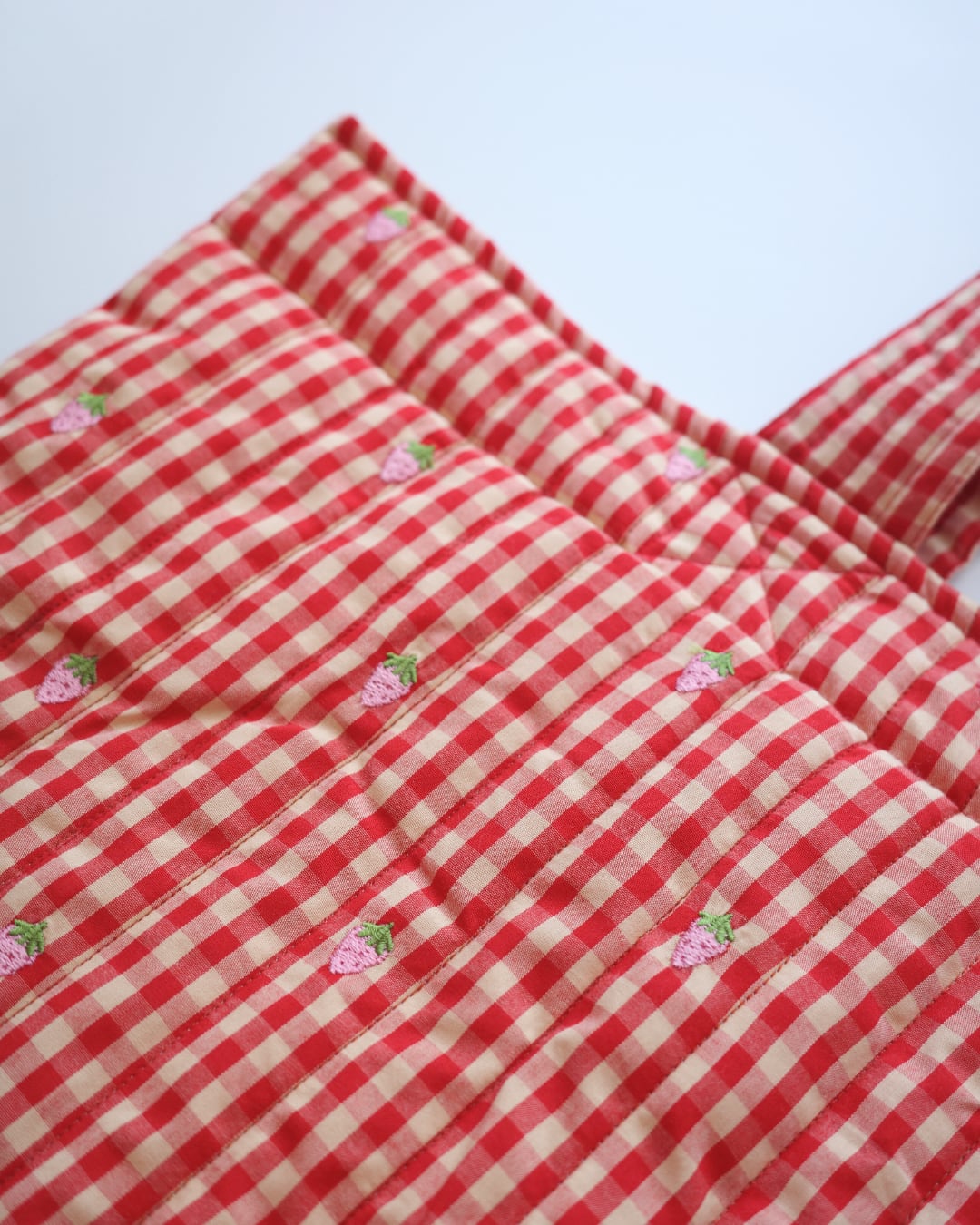 軽やかなギンガムチェックにいちご刺繍をあしらった、可愛らしさあふれるトートバッグです。